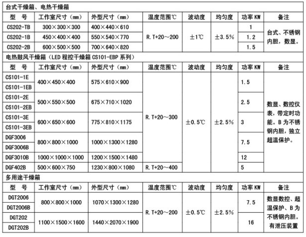 一、產品簡介 執(zhí)行與滿足標準 JB/T5520-91 用途本干燥箱適用于電工、電子、儀表、材料、醫(yī)療等科研、生產單位,主要用于物品的干燥、烘焙、熱處理、消毒、保溫等試驗。特點:1.品種、規(guī)格齊全,造型美觀大方,適應不同客戶的需要; 2.有強制對流和自然對流兩種規(guī)格的風道結構形式;3.PID控溫,數顯、數控溫度; 4.產品配有超溫保護及短路保護; 5.制造工藝達采用國外工藝水平制造。二、技術參數:
